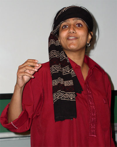 During the U.S. screenings, an important aspect was to explain the film to the audiences. Rather than pontification about the film, a solo performance was woven around the film, which also incorporated parts of the film within it. This performance called "The song" helped in engaging with the audience in a vibrant manner. |